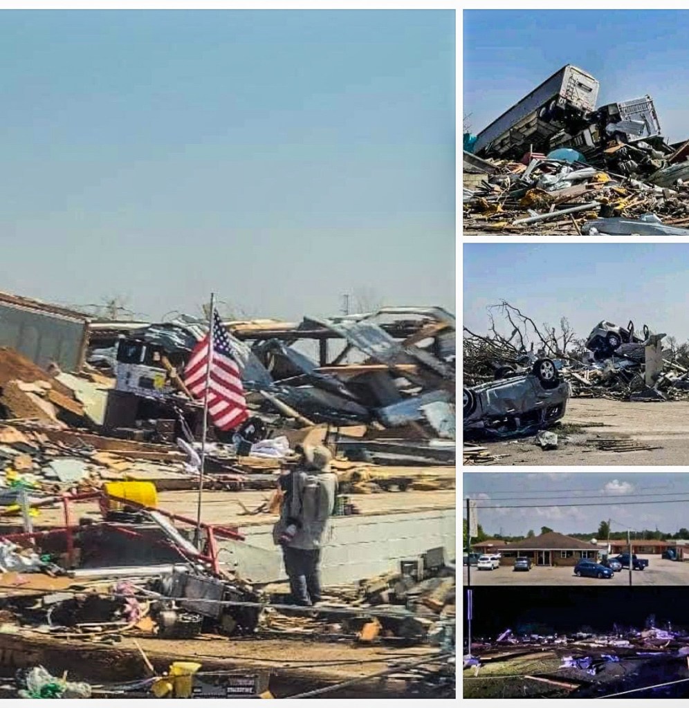 Devastación en Rolling Fork, Mississippi tras el paso de un tornado F4, que ha dejado hasta el momento 23 personas fallecidas y cientos de inmuebles totalmente colapsados.