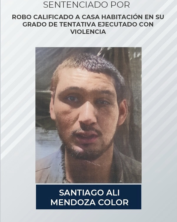 La Fiscalía Regional de Tijuana, por medio de un procedimiento abreviado, obtuvo una sentencia de 3 años 8 meses de prisión en contra de Santiago Ali Mendoza Color, quien es penalmente responsable del delito de robo calificado a casa habitación en su grado de tentativa ejecutado con violencia.