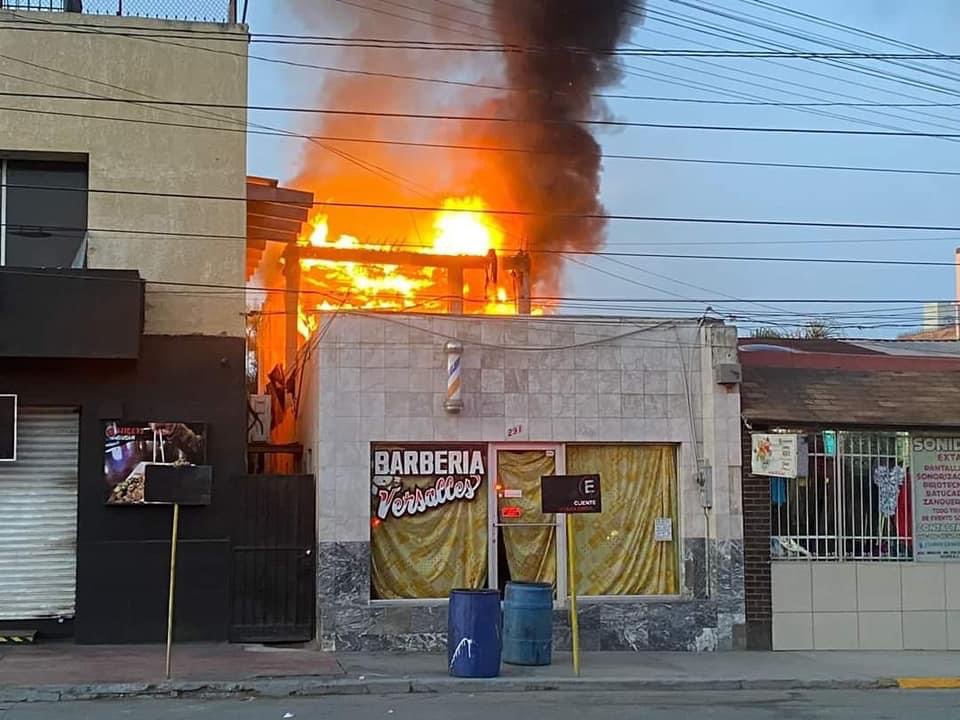 Al llegar al lugar elementos trabajaron en la contención del incendio el cual estaba en la parte superior de la peluquería Versalles y la farmacia Bristol.