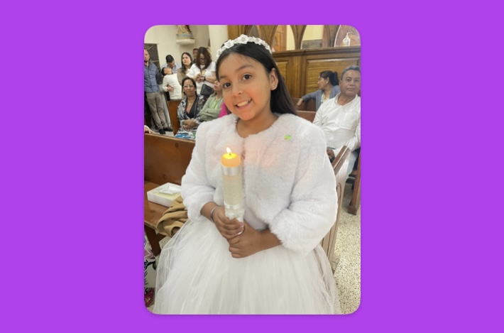 La ceremonia fue celebrada en la Iglesia de Nuestra Señora de Guadalupe, allí recibió el sacramento de la comunión, en un bonito evento donde fue acompañada por su familia y padrinos.