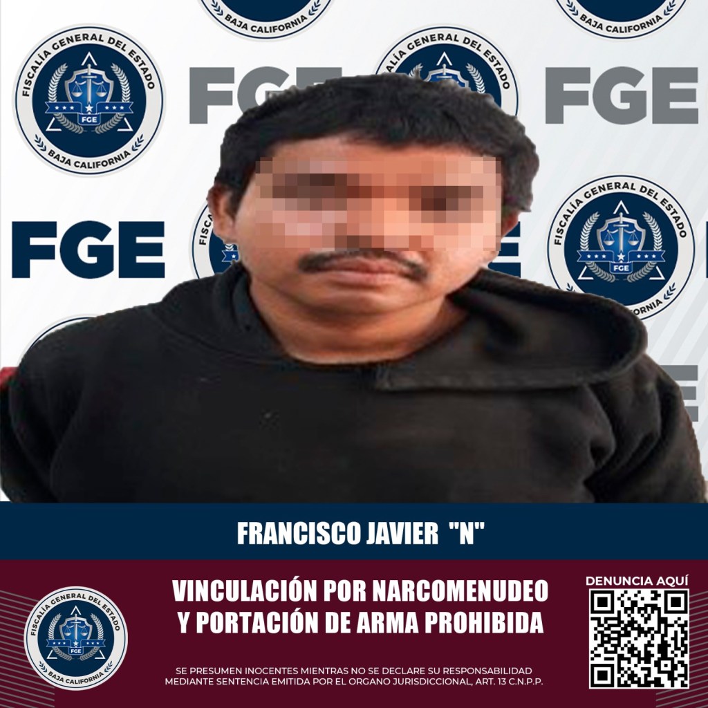 Como resultado de acciones de investigación y datos de prueba recabados por la Fiscalía Regional de Tecate, se obtuvo la vinculación a proceso de Francisco Javier “N”, quien es probable responsable de los delitos de narcomenudeo y portación de arma prohibida.