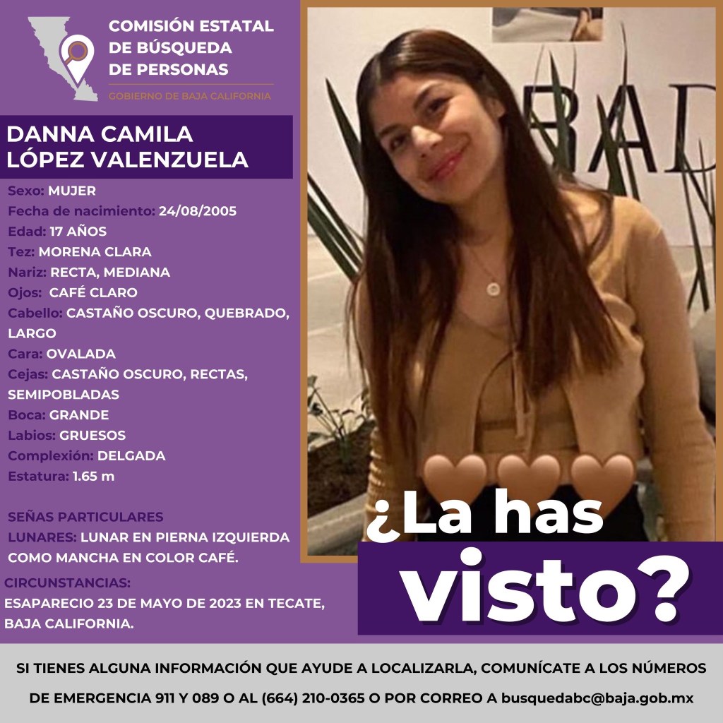 Solicitamos tu apoyo para localizar a DANNA CAMILA LÓPEZ VALENZUELA ¡Tu colaboración es muy importante!, para mayor difusión, ayuda a compartir #BusquedaBC #Persona