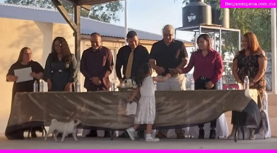 Bonito momento se vivió ayer en la graduación de la primaria Bandera Mexicana en Jacume, cuando una pequeña subió ante las autoridades a recibir un reconocimiento de aprovechamiento, tras de ella subió un perrito que la acompañó durante el recibimiento hasta que llegó con sus padres.