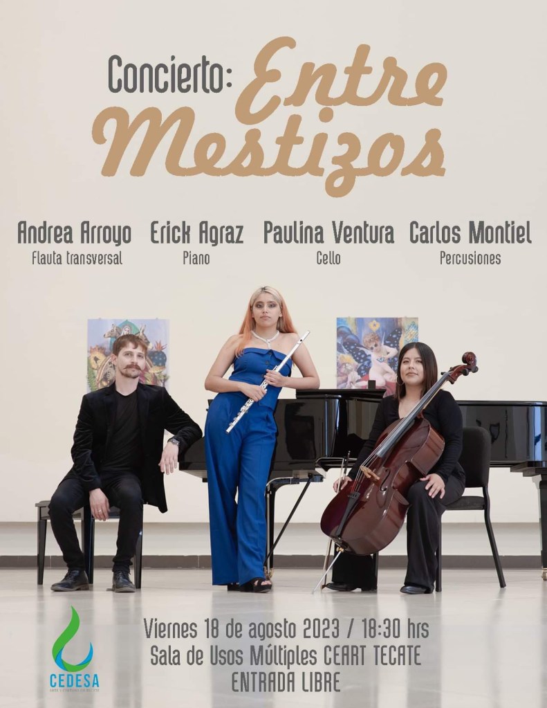 Presentan el viernes 18 de agosto 2023, a las 6:30pm, CONCIERTO ”ENTRE MESTIZOS» de la tecatense Andrea Arroyo; Hoy estudiante de la Escuela de Música Vida y Movimiento en CDMX, egresada de los Cursos Culturales de la Facultad de Artes UABC TECATE.