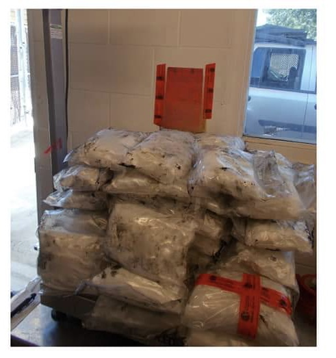 Oficiales de CBP descubrieron y extrajeron 60 paquetes del tanque de combustible auxiliar. Cincuenta paquetes contenían metanfetamina y pesaban 116.54 libras. Los 10 restantes estaban llenos de cocaína y pesaban 28,48 libras. El valor estimado de los narcóticos en la calle es de $484.890.