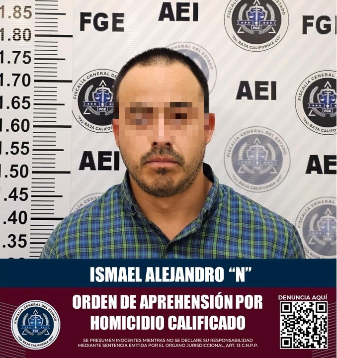 La detención de Ismael Alejandro “N”, se realizó en la carretera libre Tecate – Ensenada, en la colonia Nueva Hindú, por lo que inmediatamente después de su captura, fue trasladado a Tijuana, Baja California, para ponerlo a disposición del Juez de Control que libró la orden de aprehensión correspondiente, por el delito de homicidio calificado cometido con ventaja.
