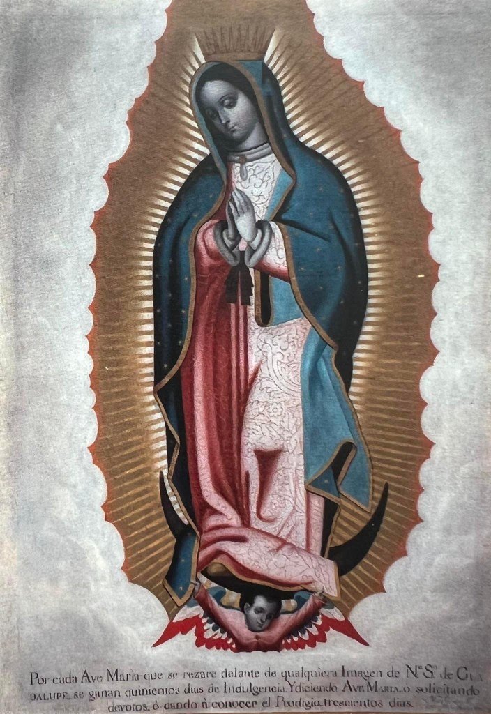 Esta magnífica Virgen de Guadalupe fue realizada por María Guadalupe en el año de 1798. Gracias a su talento fue nombrada académica por mérito de la Real Academia de San Carlos de las Nobles Artes.
