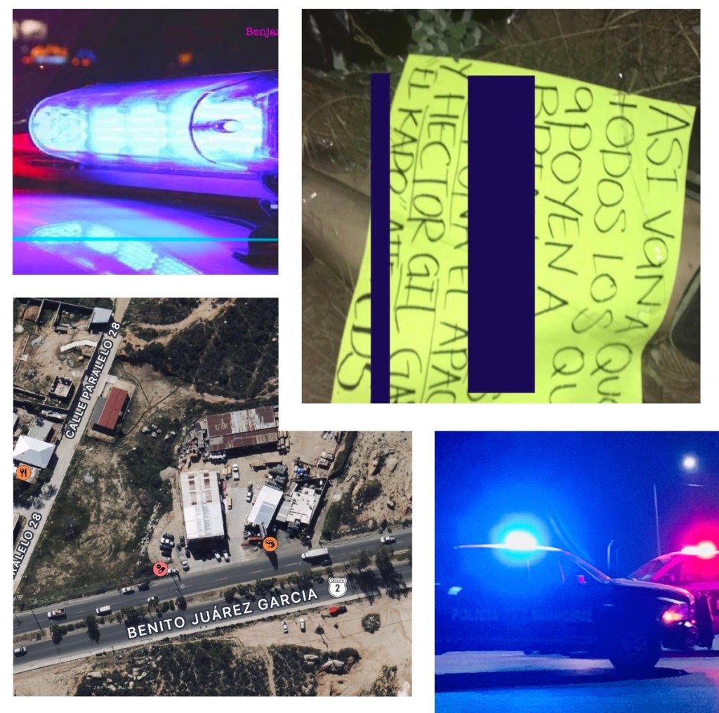 Fue dejado un narcomensaje firmado presuntamente por un grupo generador de violencia, junto al mensaje se aprecia un cuerpo sin vida y con huellas de violencia
