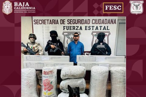 Es así como de forma conjunta, la Fuerza Estatal de Seguridad Ciudadana (FESC) y la Secretaría de la Defensa Nacional (SEDENA) lograron la detención de un hombre que transportaba más de 70 kilogramos de marihuana y armas de fuego en las inmediaciones del Rancho Santa Verónica del municipio de Tecate.