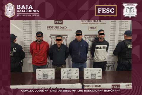 Tras proceder a la búsqueda, la autoridad estatal tuvo a la vista las características del carro reportado sobre la avenida Constitución, esquina con calle Coahuila; en dicho vehículo viajaban cuatro hombres, identificados como Ramón “N”, de 29 años y originario de Tijuana; Luis Rodolfo “N”, de 31 años y originario de Zacatecas; Cristian Ariel “N” de 24 años y originario de Tijuana y Osvaldo Josué “N”, de 37 años y originario de Mazatlán, Sinaloa.