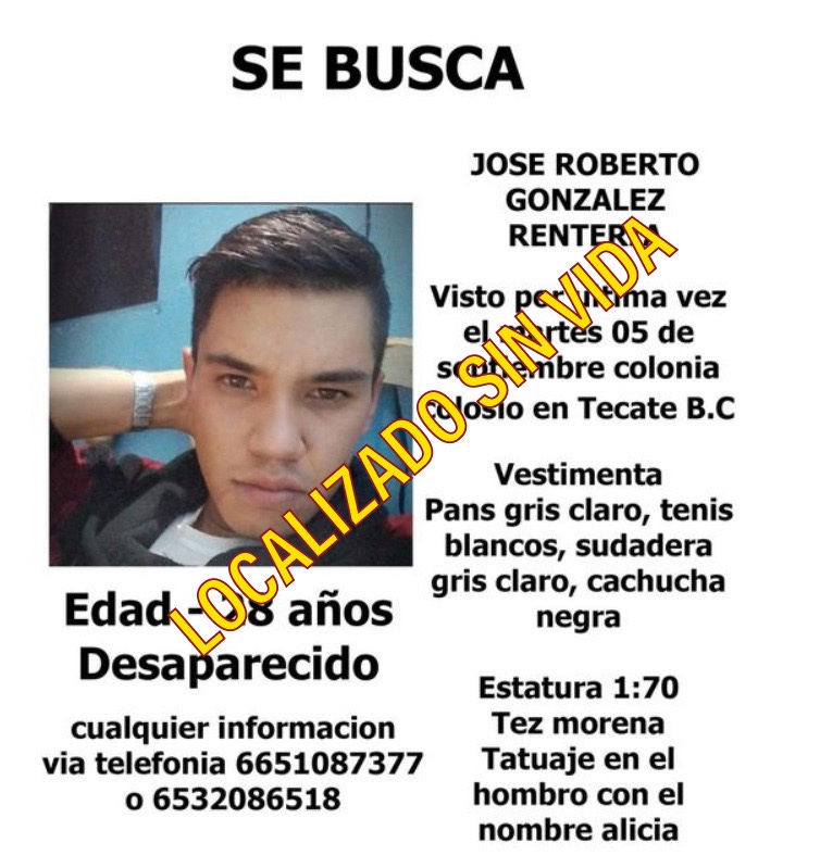 📍Familiares confirman que ya fue localizado sin vida el joven José Roberto González Rentería. Gracias a todos por su apoyo en la búsqueda del joven.