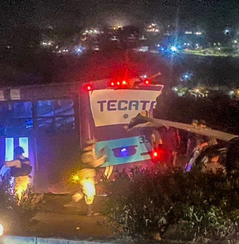 Un camión de pasajeros se accidentó en el carril de acceso a Santa Anita a unos metros de los Arcos.