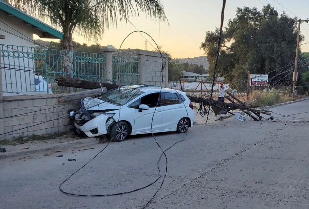 📍El conductor de un vehículo se impactó contra un poste de energía eléctrica.