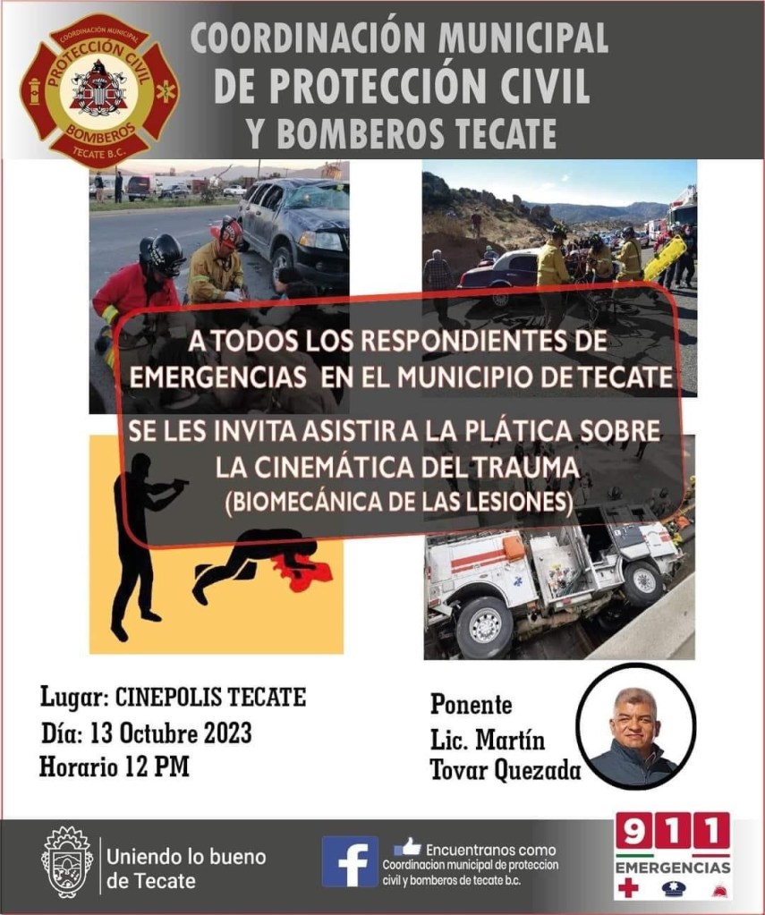 🔴SE LES INVITA ASISTIR A LA PLÁTICA SOBRE LA CINEMÁTICA DEL TRAUMA (BIOMECÁNICA DE LAS LESIONES).