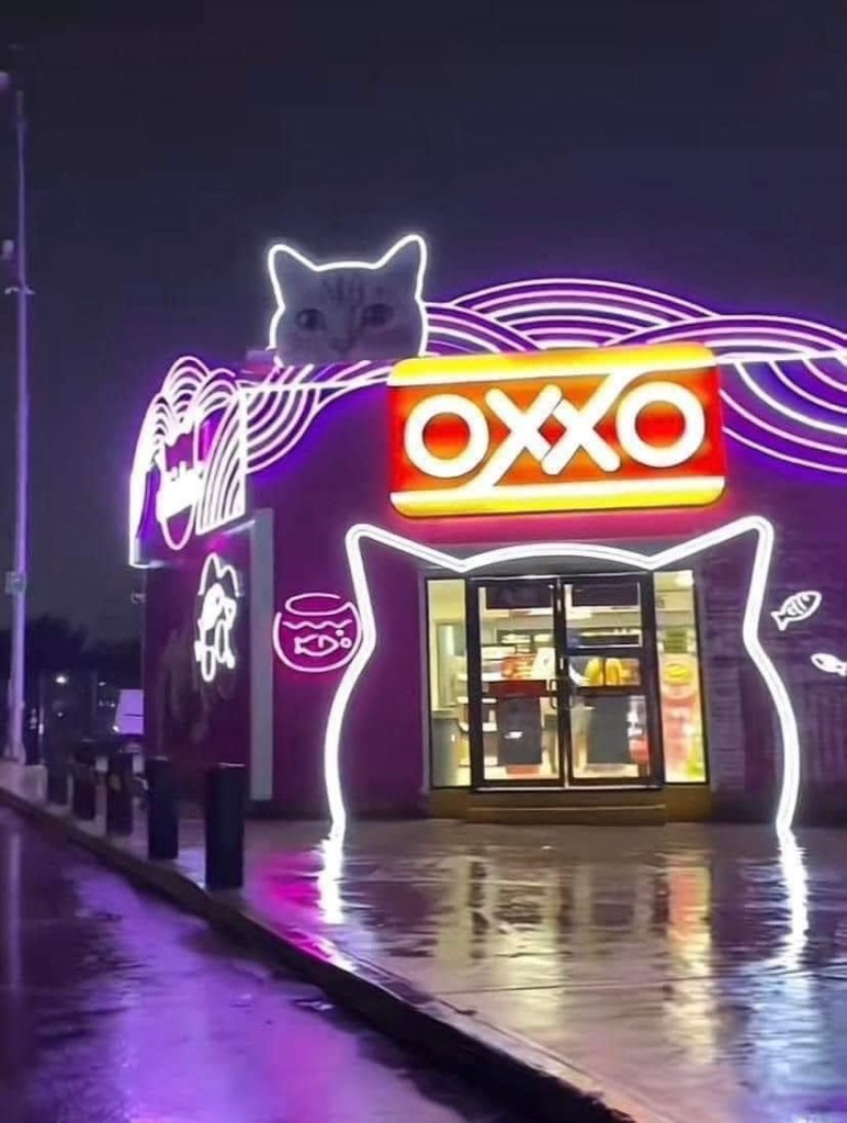 📍Rápidamente se vitalizo el Michi Oxxo; mismo que fue promovido por la marca de alimentos para Gato Whiskas, quienes decoraron el exterior del comercio.