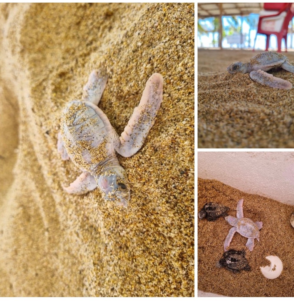 En el municipio de Compostela en el Campamento Tortuguero El Naranjo en la Peñita de Jaltemba se reportó hace un par de días el nacimiento de tortugas, entre ellas una albina.