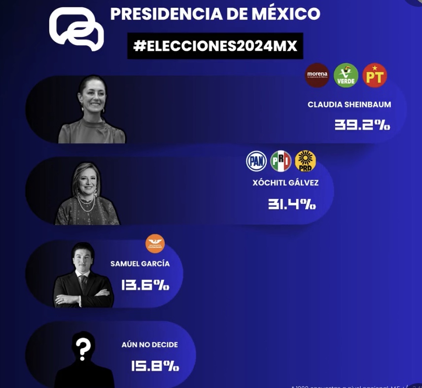 📍SOLO EL 7.8% SEPARA A LA CANDIDATA OFICIAL CONTRA XÓCHITL GÁLVEZ DEL PRI- PAN Y PRD.