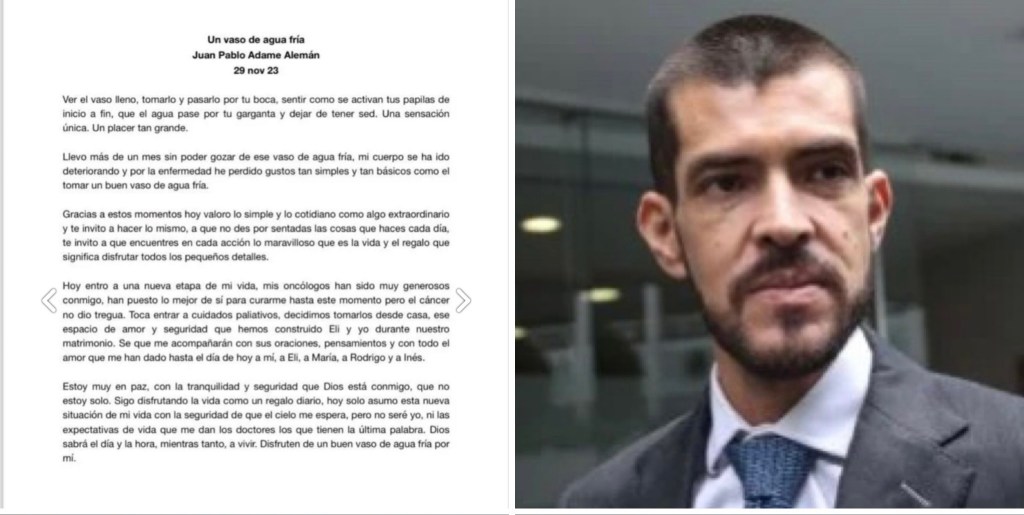 Hoy entro a una nueva etapa de mi vida, mis oncólogos han sido muy generosos conmigo, han puesto lo mejor de si para curarme hasta este momento pero el cáncer no dio tregua. Toca entrar a cuidados paliativos, decidimos tomarlos desde casa, ese espacio de amor y seguridad que hemos construido Eli y yo durante nuestro matrimonio. Se que me acompañarán con sus oraciones, pensamientos y con todo el amor que me han dado hasta el día de hoy a mi, a Eli, a María, a Rodrigo y a Inés.