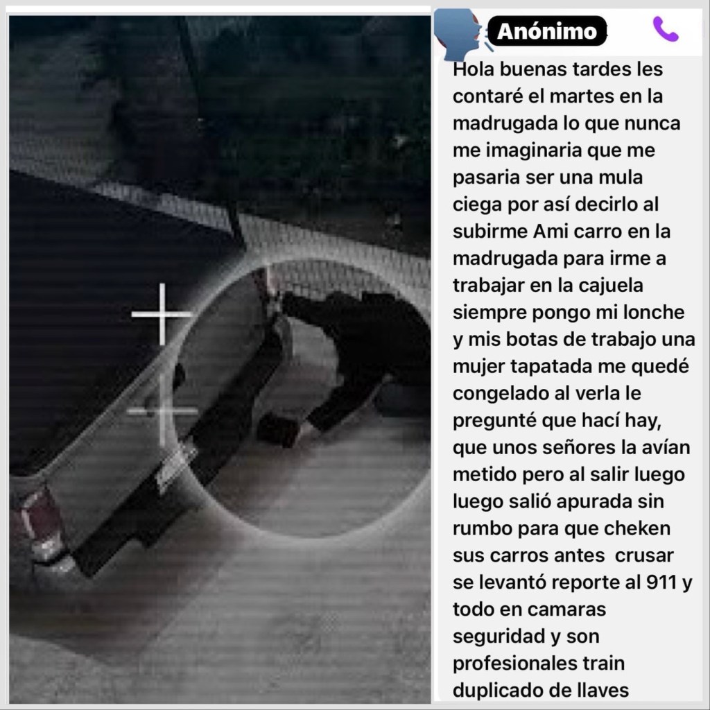 📌EL MENSAJE PRINCIPALMENTE ES PARA QUE TOMEN PRECAUCIÓN Y REVISEN SU VEHÍCULO ANTES DE CRUZAR A ESTADOS UNIDOS O BIEN, ANTE POSIBLES ACTIVIDADES SOSPECHOSAS LLAMEN A LA AUTORIDAD.