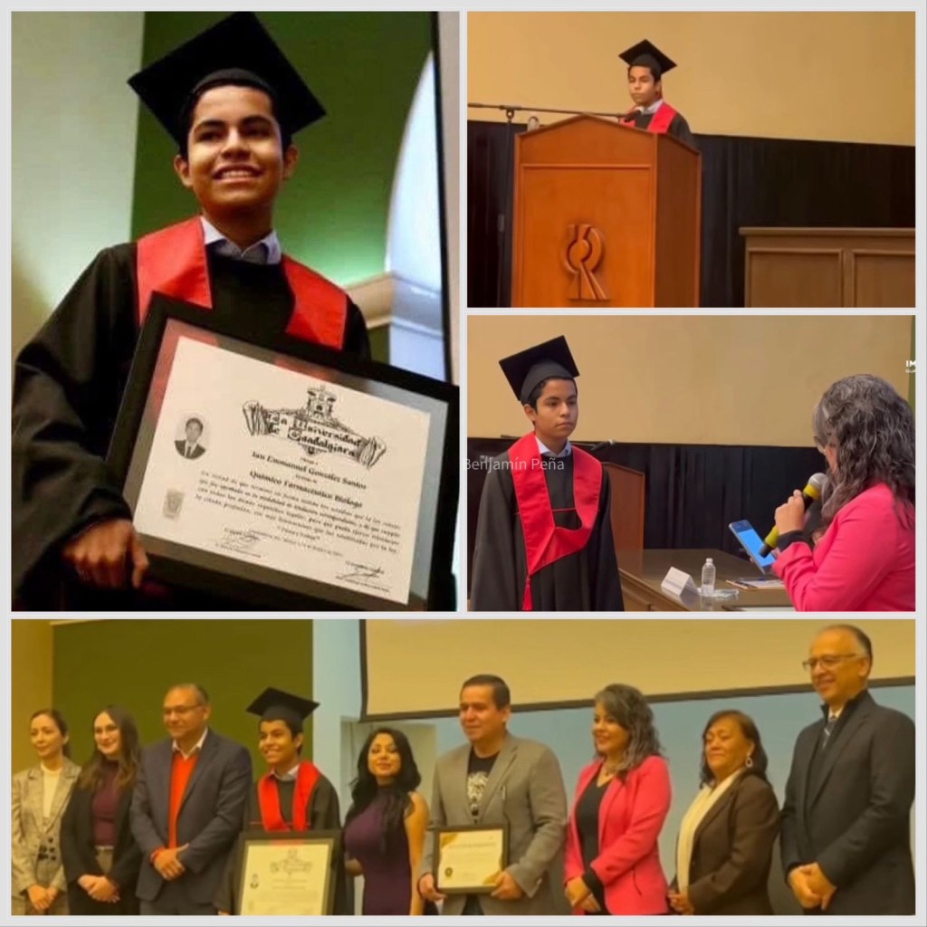 📍Ian González es el primer joven de 13 años en titularse como Químico Farmacéutico Biólogo de la UDG.