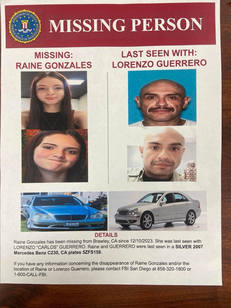 La menor identificada como Ranie Gonzales de 13 años desapareció de la ciudad mencionada el pasado 10 de diciembre del 2023. Así también el presunto raptor fue identificado como Lorenzo Guerrero de 43 años.