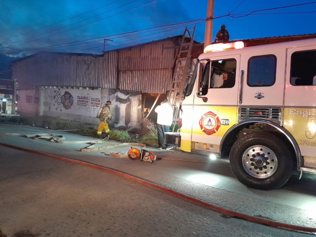 La coordinación Municipal de Protección Civil y Bomberos atiende incendio en comercio activo sobre colonia Emiliano Zapata, en el lugar trabajan tres unidades, al momento el incendio involucra únicamente el inmueble (taller de herrería).