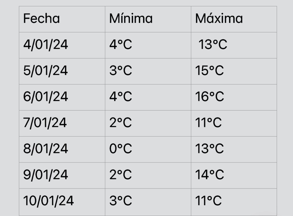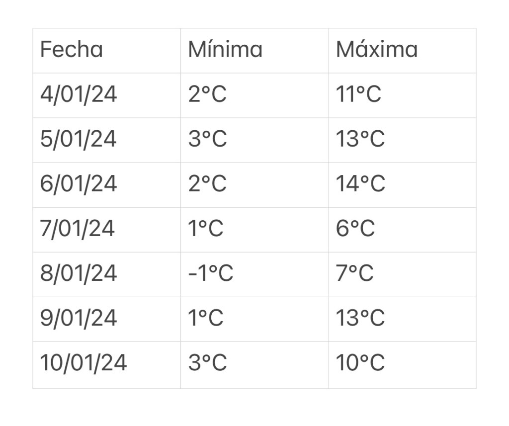 ❄️A partir del jueves 4 al miércoles 10 de enero, las temperaturas oscilarán entre los 0 y 4 grados centígrados(los más gélidos del domingo 8 al miércoles 10 de enero) principalmente por las noches.