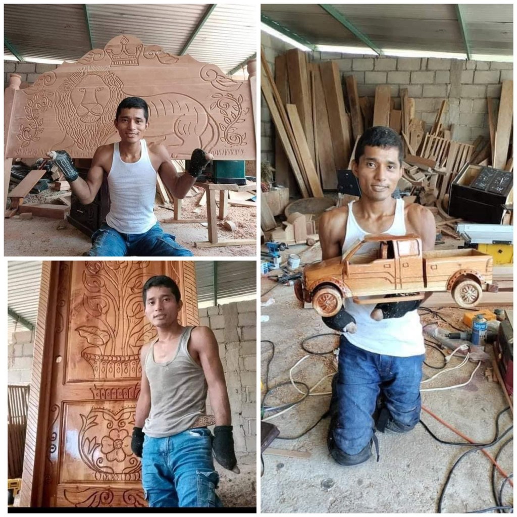 👨🎨Sin duda el jóven chiapaneco Ismael Maldonado Morales originario de #Mapastepec #Chiapas es un gran ejemplo de que con ganas, es posible salir adelante y vencer las adversidades y es que a pesar de no contar con sus extremidades completas, Ismael ha demostrado que eso no es impedimento para desarrollar su gran talento el cual le permite crear figuras y muebles de madera que son auténticas obras de arte.