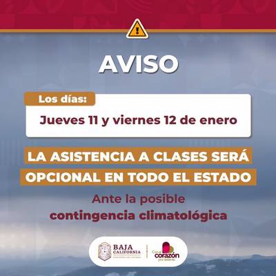 Asimismo, la entrada a clases para los alumnos de Tecate será a las 9 de la mañana por estos dos días.