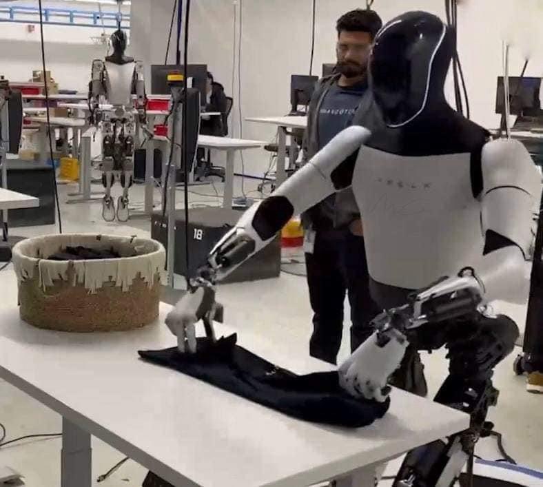 🤖TESLA PRESENTÓ LOS AVANCES DEL ROBOT OPTIMUS, QUE YA PUEDE DOBLAR ROPA.