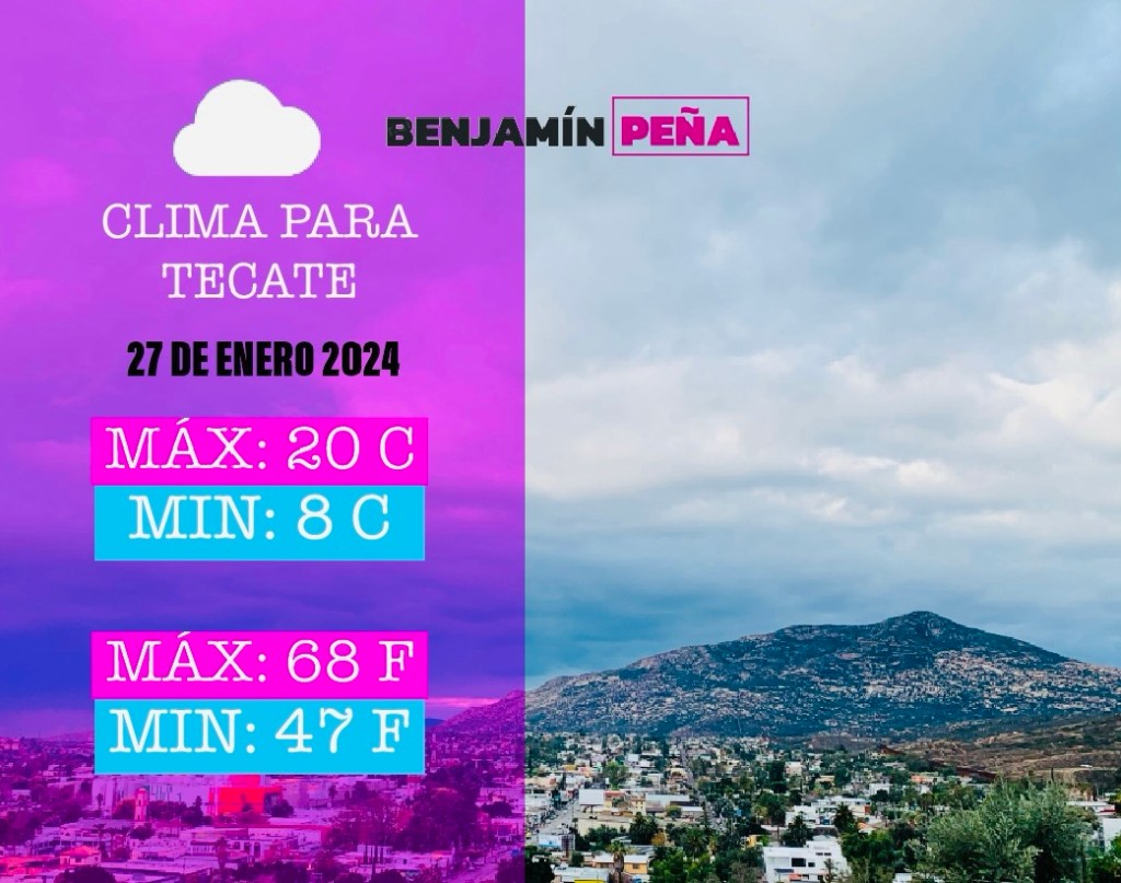 26 de enero de 2024 Benjaminpenamx TECATE || PRONÓSTICO DEL TIEMPO PARA EL 27 DE ENERO 2024 ☁️💨condición Santana 🌡️máxima 20°C 🌡️mínima 8°C 🌡️máxima 68°F 🌡️mínima 47°F Comparte esto: Compartir en X (Se abre en una ventana nueva) X Comparte en Facebook (Se abre en una ventana nueva) Facebook Me gusta Cargando...