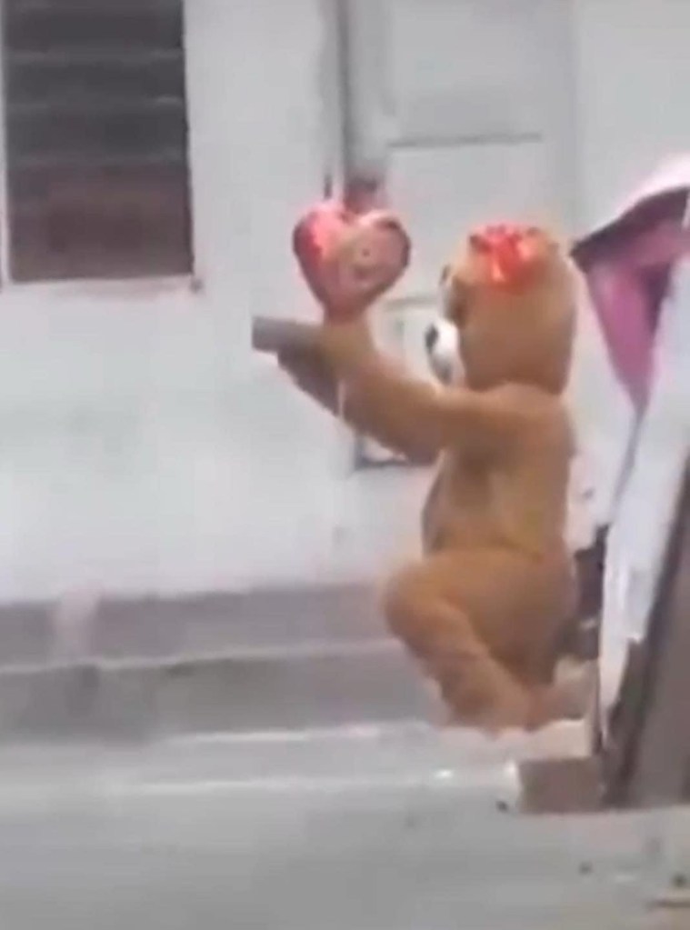 📌Entonces sales a recibir tu regalo, pero resulta que todo era una trampa, el oso era un policía disfrazado y todo fue un show para arrestarte.