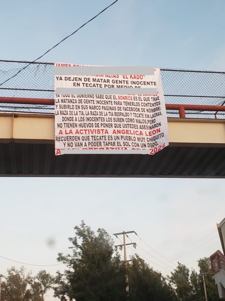 17 de febrero de 202417 de febrero de 2024 Benjaminpenamx TECATE || DEJAN NARCOMANTAS EN DISTINTOS PUNTOS DE LA CIUDAD 📍TRAS EL ASESINATO DE LA ACTIVISTA ANGELITA LEÓN HA HABIDO ACUSACIONES ENTRE SUPUESTOS GRUPOS DEL CRIMEN ORGANIZADO. Comparte esto: Compartir en X (Se abre en una ventana nueva) X Comparte en Facebook (Se abre en una ventana nueva) Facebook Me gusta Cargando...