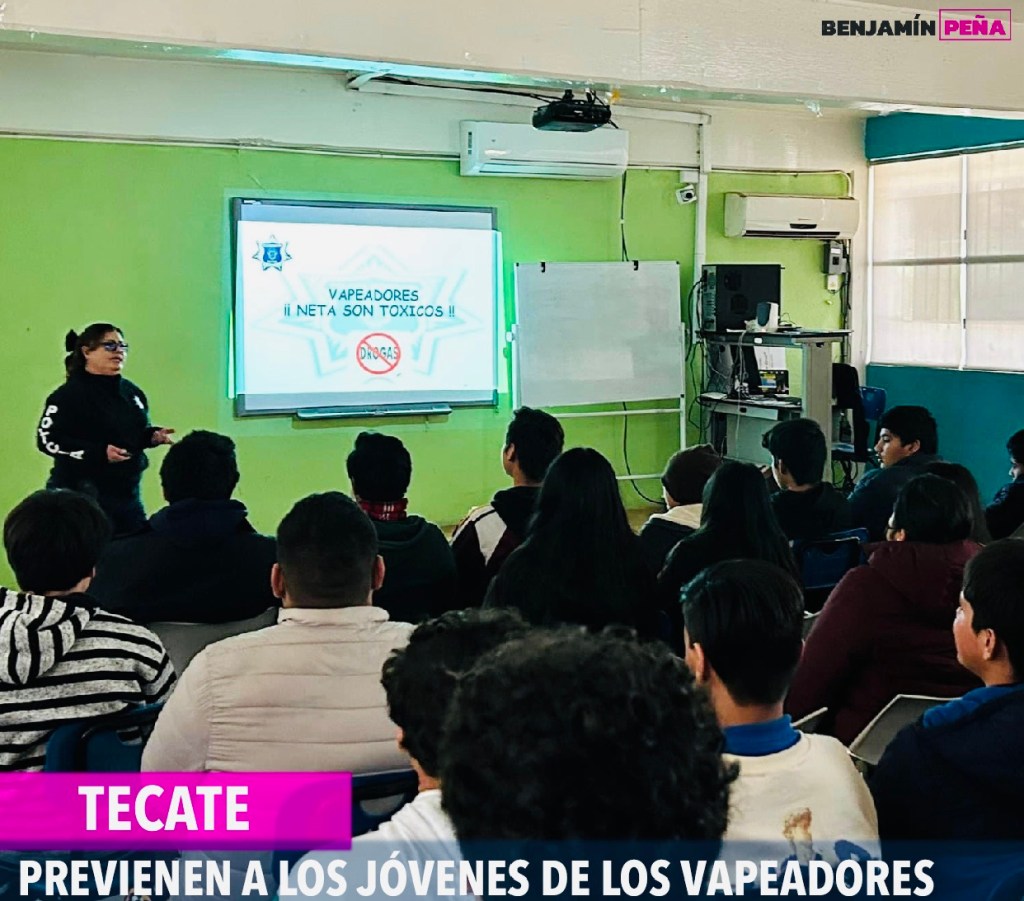 El departamento de prevención del delito perteneciente ala dirección de seguridad ciudadana que encabeza la Mtra. Elsa Macías Vázquez , Impartió en la secundaria sor Juana Inés de la cruz #2 a un total de 180 estudiantes,la plática sobre los riesgos y consecuencias de los cigarros electrónicos (vapeadores) ,con estas acciones se tiene como objetivo prevenir e informar a los jóvenes el riesgo de consumir estos vapores que dañan la salud física afectando los órganos , inclusive pueden provocar la muerte ,así como generan ansiedad y estados emocionales inestables .