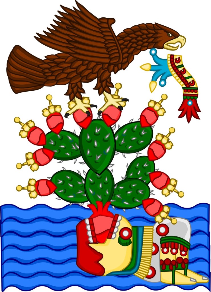 📌Originalmente el águila no llevaba una serpiente en su pico sino el símbolo de la guerra sagrada, el agua quemada, el atl tlachinolli.