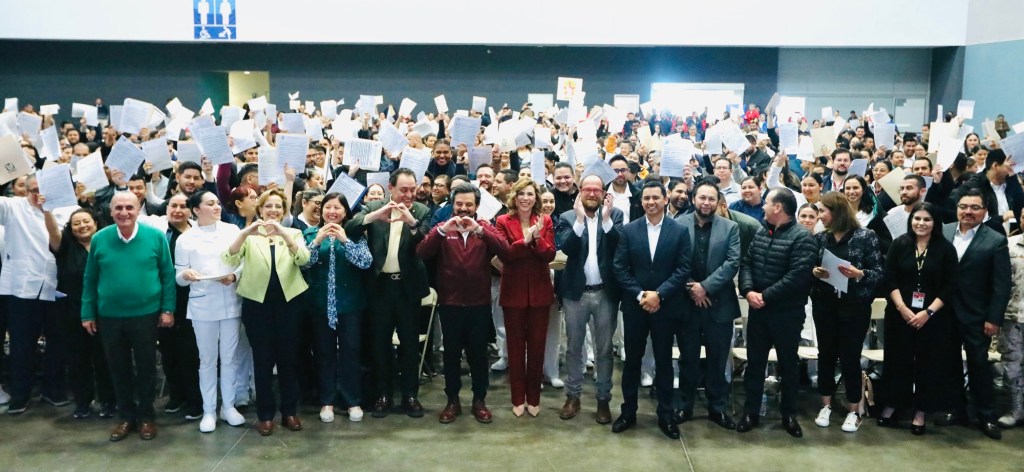 Agregó que el IMSS-Bienestar no solo representa que México fortalezca sus alcances para llevar la salud a todas y todos los mexicanos sin importar su condición social y económica, sino también el pleno reconocimiento por parte de la autoridad de los derechos laborales del personal de salud, asegurando para ellas y ellos un mejor futuro.