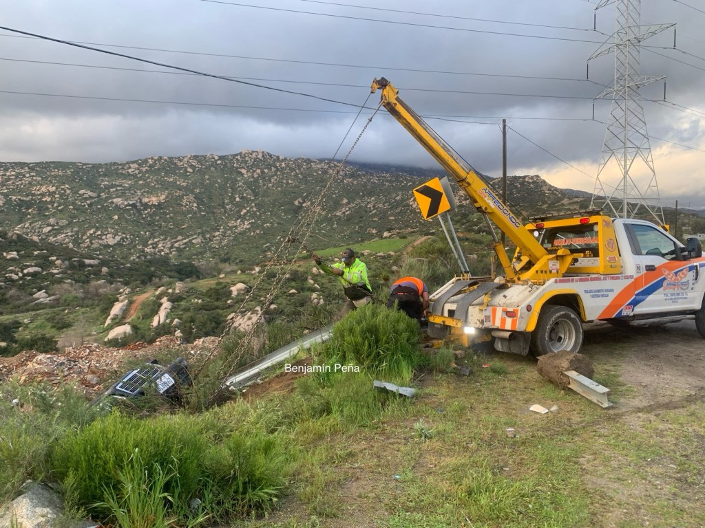📌UNA GRÚA HACE MANIOBRAS PARA RECUPERAR EL VEHÍCULO QUE SE FUE AL BARRANCO Y QUE ADEMÁS TUMBÓ PARTE DEL CERCO DE SEGURIDAD VIAL.