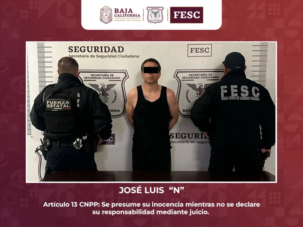 El individuo fue detenido sobre la calle Álamo en la colonia El refugio, en Tecate, en donde se tuvo a la vista a una persona del sexo masculino que adoptó una actitud inusual al apresurar el paso cuando se percató que la autoridad estatal llevaba el mismo trayecto que él.