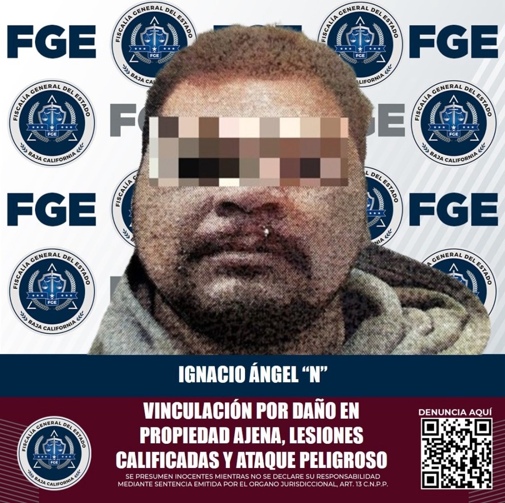 La Fiscalía Regional de Tecate, a través del agente del Ministerio Público, presentó en audiencia elementos de prueba para que Ignacio Ángel “N” quedara vinculado a proceso penal por los delitos de daño en propiedad ajena intencional, lesiones calificadas y ataque peligroso.