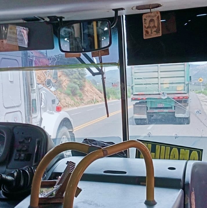 📍EL AUTOBÚS VENÍA DE ENSENADA A TECATE Y FUE CUANDO DOS CAFRES OBSTRUYERON EL PASO DEL CAMIÓN DE PASAJEROS, PONIENDO EN RIESGO LA INTEGRIDAD DE LAS PERSONAS.