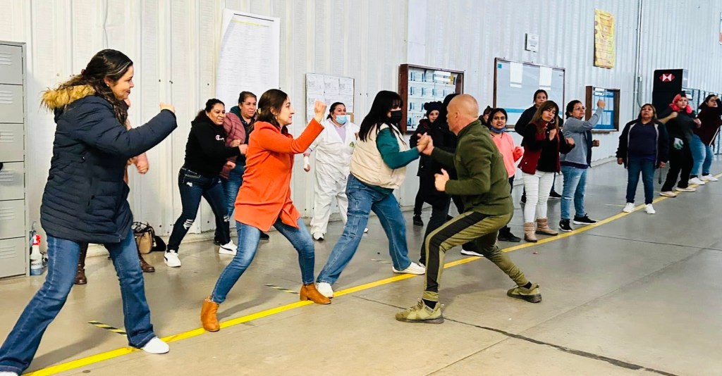 Así mismo se llevó una clase práctica por el maestro en artes marciales Víctor Nuñez quien les enseñó técnicas de ataque como defensa en caso de estar en una situación de asalto o agresión.