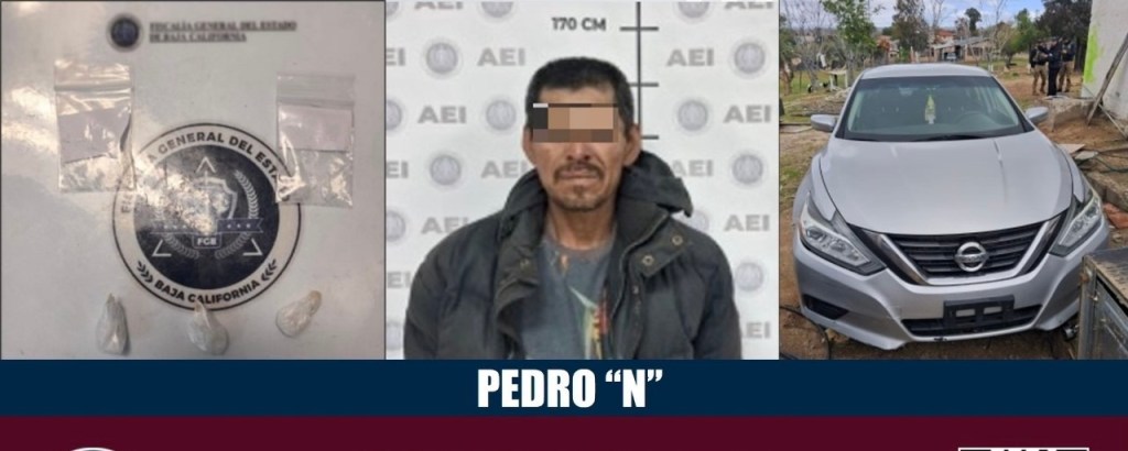 Asimismo, quedó asegurado un vehículo de motor Nissan, línea Altima, modelo 2017, de color gris, con placas de Baja California, el cual contaba con reporte de robo del 5 de diciembre de 2021, en la ciudad de Tijuana; y se detuvo a un sujeto que responde al nombre de Pedro “N”, de 43 años de edad.