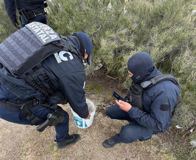 Al inspeccionar la vialidad los agentes encontraron objetos “poncha llantas” que recogieron del suelo y al realizar recorrido pie tierra por la zona localizaron entre matorrales más objetos de metal similares así como una cubeta, mismos que aseguraron de forma inmediata y posteriormente se procedió a auxiliar a los automovilistas afectados en apoyo a personal de Caminos y Puentes Federales (CAPUFE).