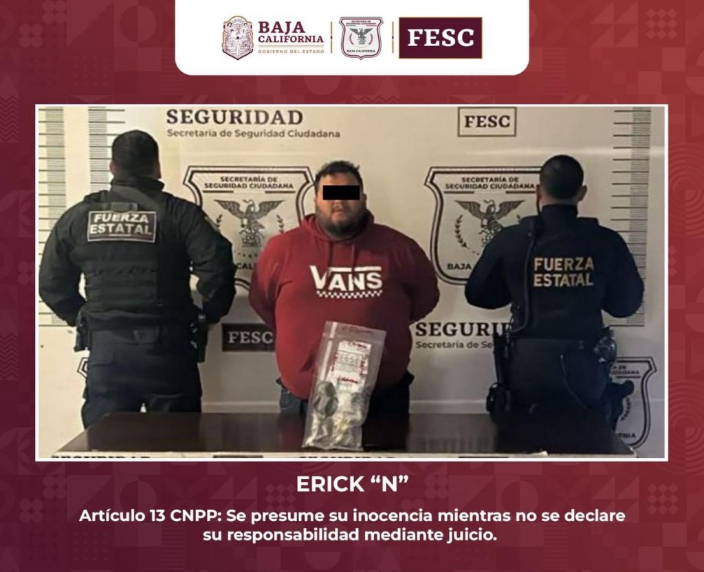 Asimismo, sobre la calle Tecate Solar en la colonia Mi Ranchito, agentes intervinieron a quien se identificó como Erick “N” y que estaba recargado en la malla ciclónica de una propiedad cuando al notar la presencia de las autoridades arrojó una bolsa al suelo, acción que a los uniformados les pareció sospechosa por lo que procedieron a solicitarle una inspección precautoria.