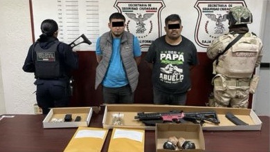 Dos presuntos integrantes de un grupo delictivo generador de violencia en la entidad, fueron sorprendidos en flagrancia en poder de un fusil de asalto, dos granadas de fragmentación, varios cartuchos útiles y aproximadamente 200 gramos de metanfetamina; en la detención de ambos individuos participaron agentes de la Fuerza Estatal de Seguridad Ciudadana (FESC) y elementos de la Secretaría de la Defensa Nacional (SEDENA).