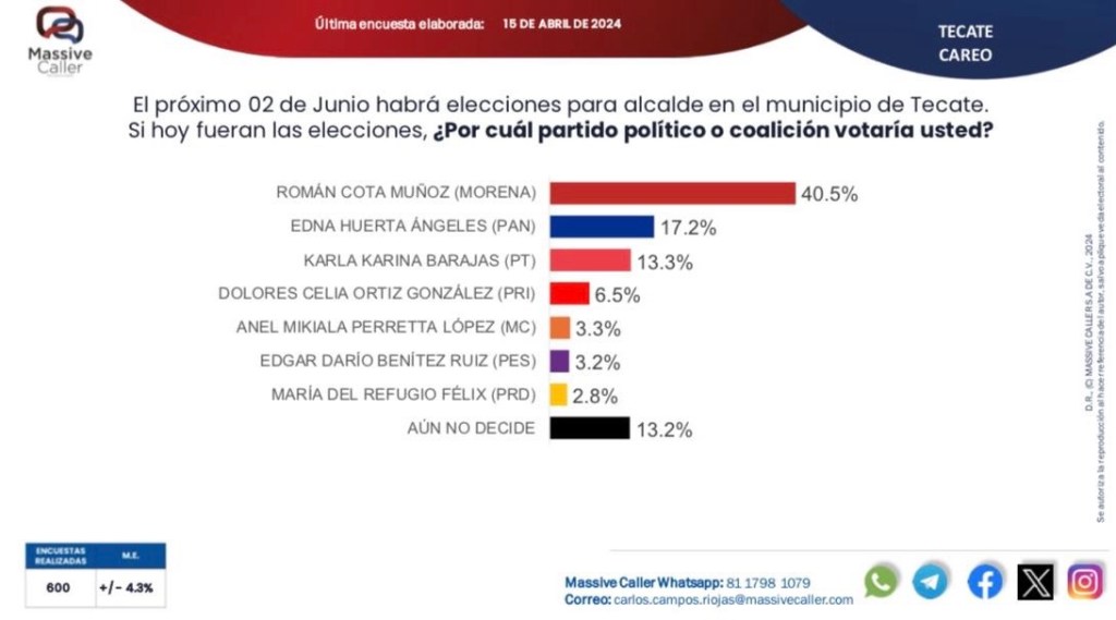 18 de abril de 2024 Benjaminpenamx TECATE || ROMÁN COTA A LA DELANTERA CON 40% DE PREFERENCIA ELECTORAL: MASSIVE CALLER Comparte esto: Compartir en X (Se abre en una ventana nueva) X Comparte en Facebook (Se abre en una ventana nueva) Facebook Me gusta Cargando...