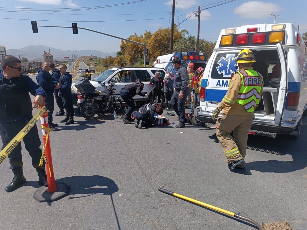 La coordinación municipal de Protección Civil y Bomberos atiende colisión con heridos sobre carretera Tecate -Tijuana km 139 en la zona conocida como El Bajío, en el lugar se atiende paciente masculino en prioridad estable trasladado por la ambulancia de EMT a un hospital en el lugar se hace cargo guardia nacional sección carreteras.