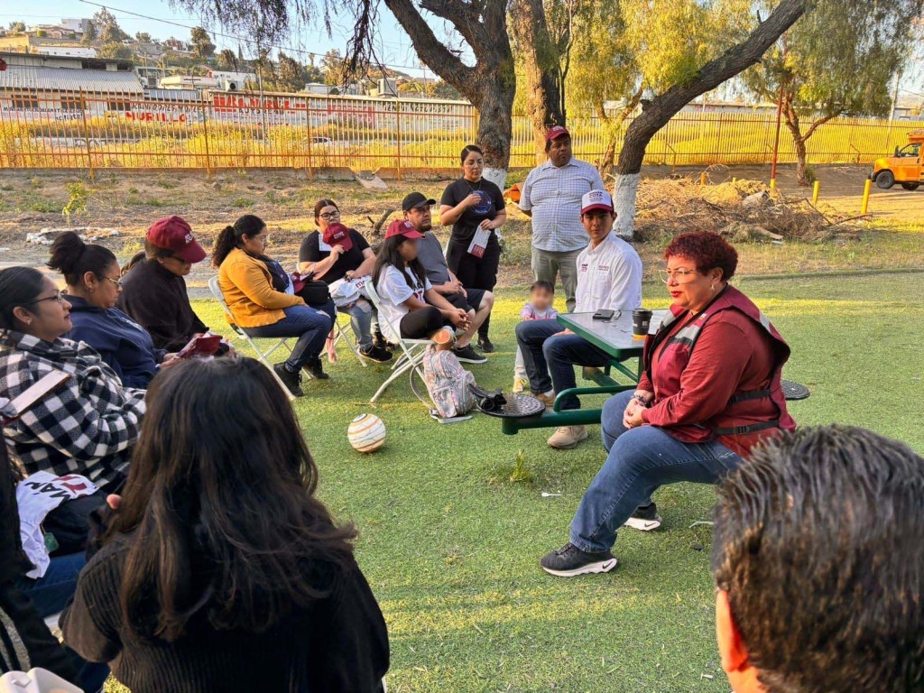 Maythé Méndez Vélez candidata a la diputación por el distrito 06 local por Morena, se reunió este viernes con padres y madres de familia cuyos hijos forman parte de ligas infantiles de futbol, en la reunión también estuvo el candidato a la alcaldía por Morena, Román Cota Muñoz.