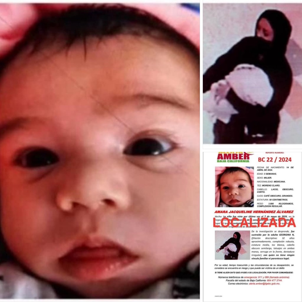 La Fiscalía General del Estado (FGE) informa que ha sido localizada Amara Jacqueline Hernández Álvarez de tres semanas de edad, por quien se había emitido una Alerta Amber.