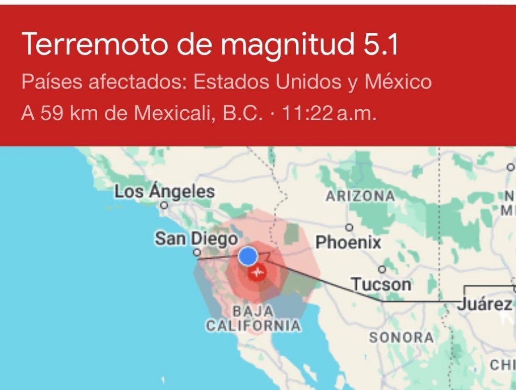 12 de mayo de 2024 Benjaminpenamx MEXICALI || SISMO DE 5.1 SACUDE MEXICALI ESTÁ MAÑANA Autoridades reportan que ha estado temblando desde temprano así que manténganse alertas Comparte esto: Compartir en X (Se abre en una ventana nueva) X Comparte en Facebook (Se abre en una ventana nueva) Facebook Me gusta Cargando...